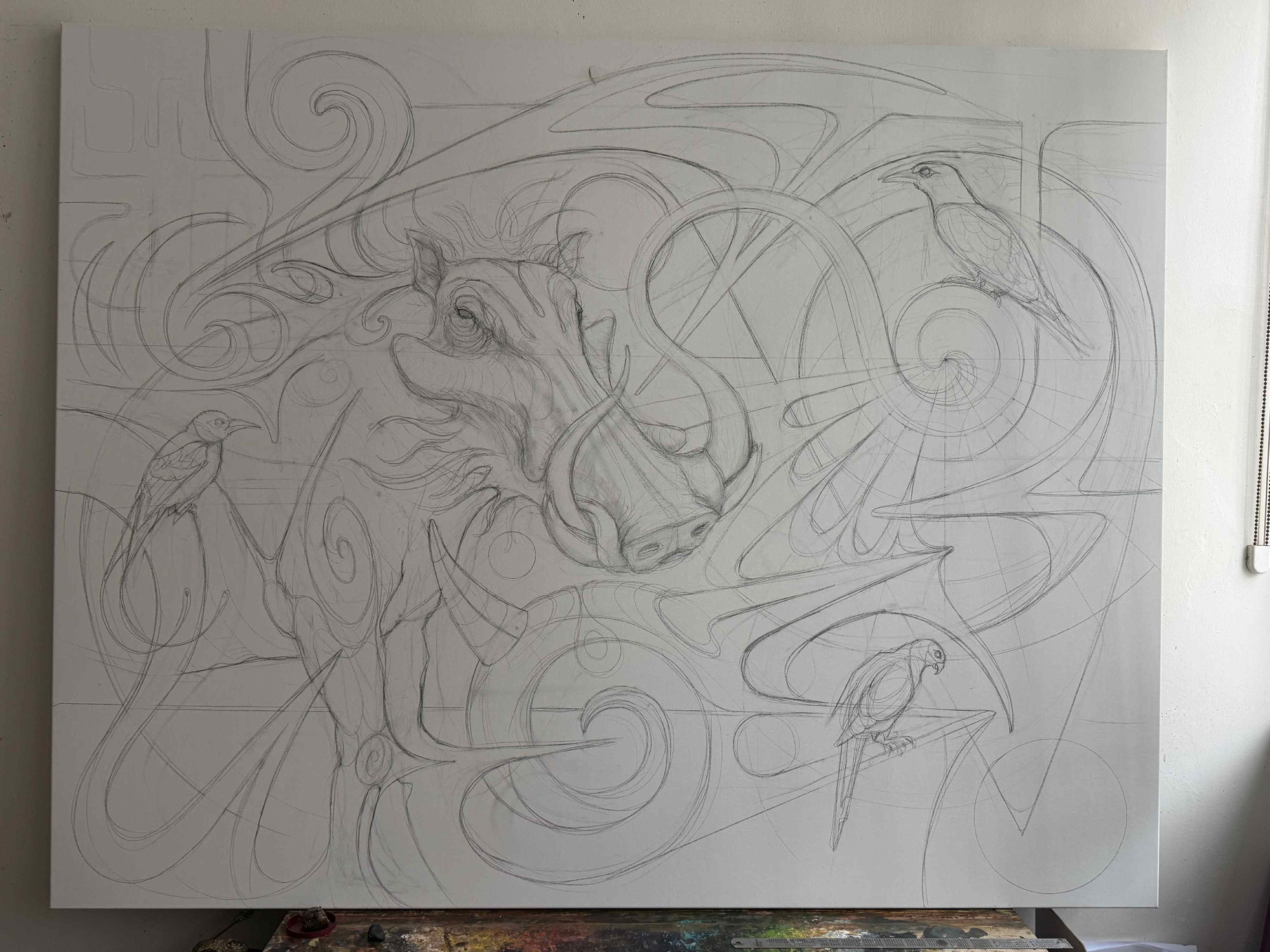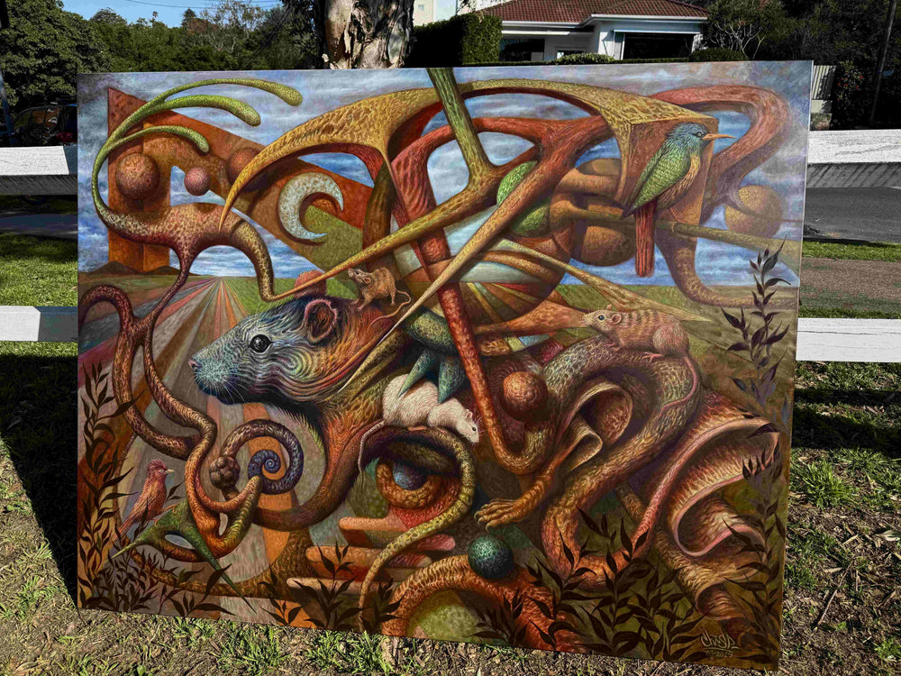 (This piece (#1) is part of a 12 large-scale oil paintings based and inspired on the Chinese Zodiac Calendar).